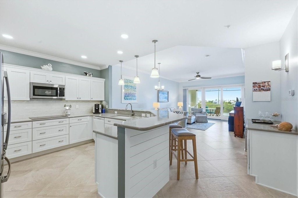 Fabulous, fully remodeled 2-bedroom, 2.5-bath third-floor condo in the closest building to the Intracoastal Waterway at Hacienda Del Mar. With a tremendous location and mesmerizing water views, this residence truly captures the essence of coastal living. Thoughtfully updated from top to bottom, the home features authentic coastal design and stunning views of Florida?s Intracoastal Waterway. The beautifully renovated kitchen and bathrooms showcase custom shaker-style wood cabinetry, elegant quartz countertops, stainless steel appliances, a luxurious freestanding soaking tub, and premium plumbing and lighting fixtures. The open layout flows seamlessly throughout the home, highlighted by gorgeous 24-inch tile flooring and fresh interior paint that brightens every space. The stunning lanai has been enhanced to create the perfect indoor-outdoor living experience, complete with a fully equipped outdoor kitchen, motorized hurricane shutters, screened enclosure, and tile flooring. Ideally positioned between the community pools and boat slips, this residence offers convenient access to all of Hacienda Del Mar?s exceptional amenities. Residents enjoy two resort-style heated swimming pools and spa, two clubhouses, a fitness center, dog park, tennis and pickleball courts, day docks, and 23 acres of beautifully maintained tropical landscaping. Hacienda Del Mar is located near marinas, world-class fishing and boating, ferry access to Palm Island, shopping, excellent dining, private and public golf courses, historic Boca Grande, and miles of pristine sandy beaches. Many of the newer elegant furnishings are negotiable for further convenience.